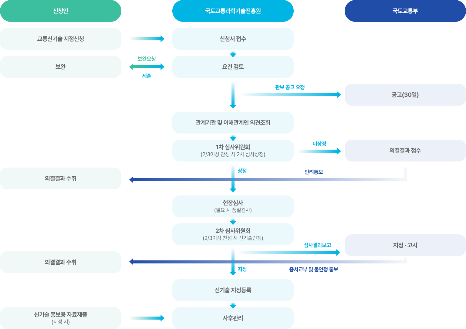• 제출방법 : 이해관계의견서[규정 별지 제1호서식](상세 설명자료 포함)에 맞게 작성하여 관보공고일부터 30일 내에 '국토교통과학기술진흥원'에 공문으로 제출